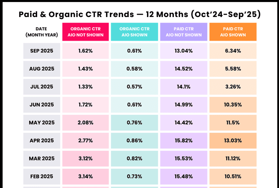 Seer Interactive tracked 25.1 million impressions across 42 organizations over 15 months and found that organic click-through rates on queries with Google AI Overviews have dropped 61% since mid-2024. Paid CTR on those same queries? Down 68%. That’s not a minor dip. That’s a structural shift in how search works. And it should make you think more seriously about how you company, product, or service appears in AI Overviews.